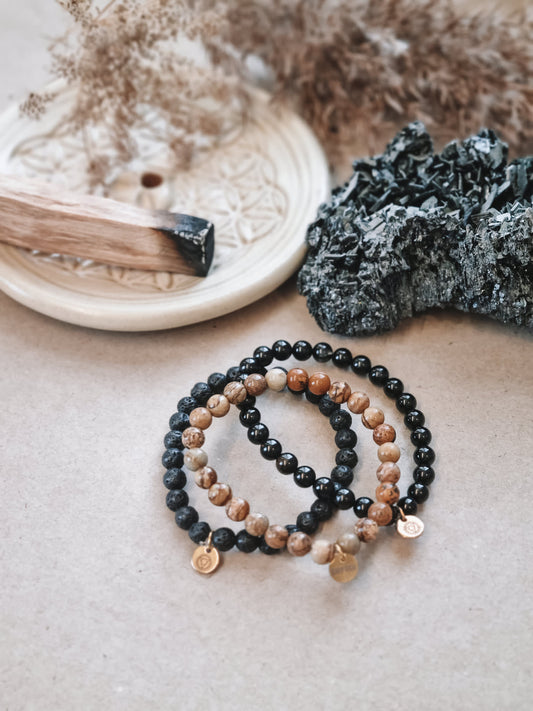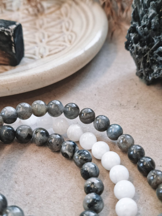 Mantra ENERGY bracelet - Renewal, dedication and potential - white moonstone, black larvikite and blue labradorite -