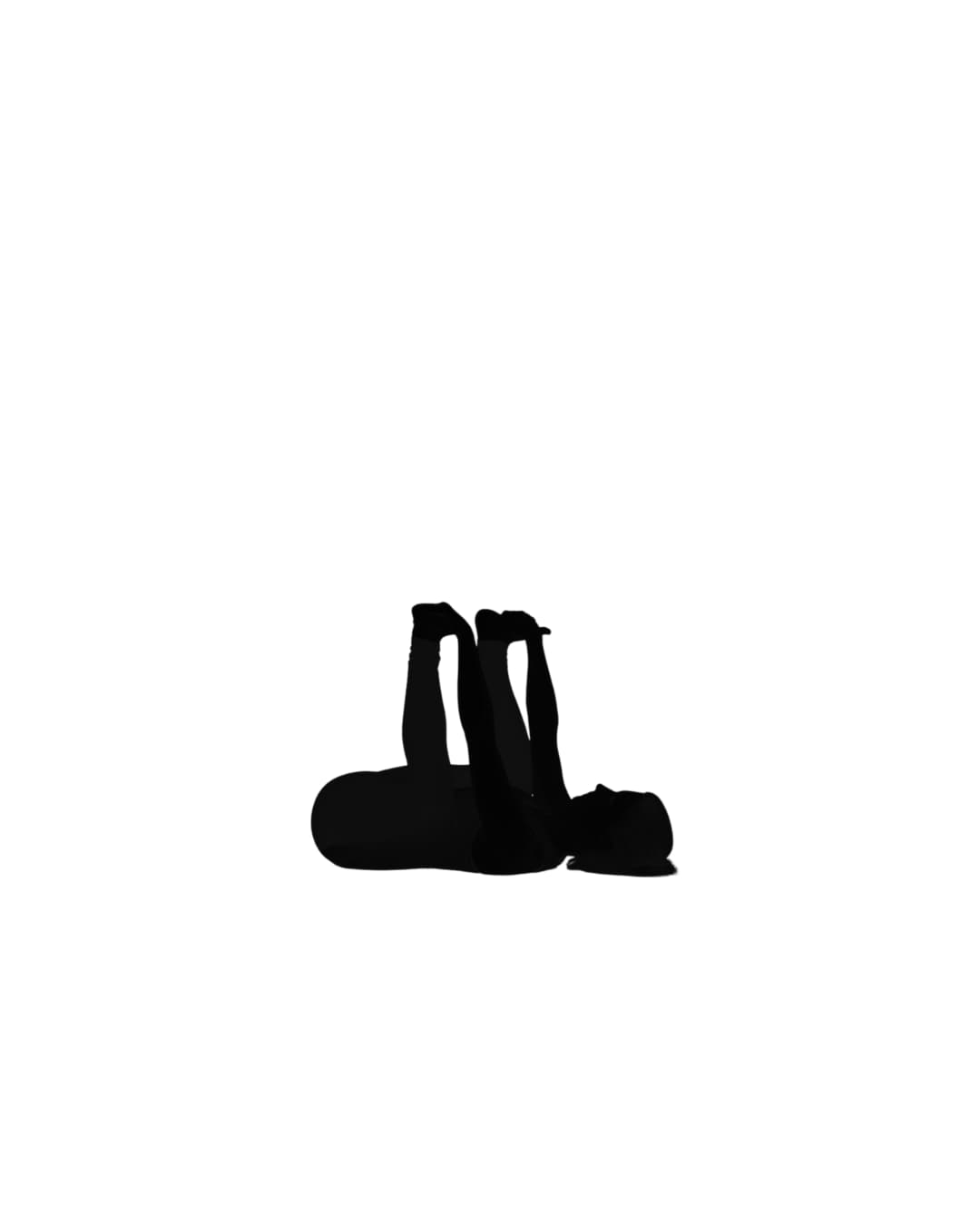 - Så här gör du: Ligg på rygg med fotsulorna mot varandra och knäna ut åt sidorna.