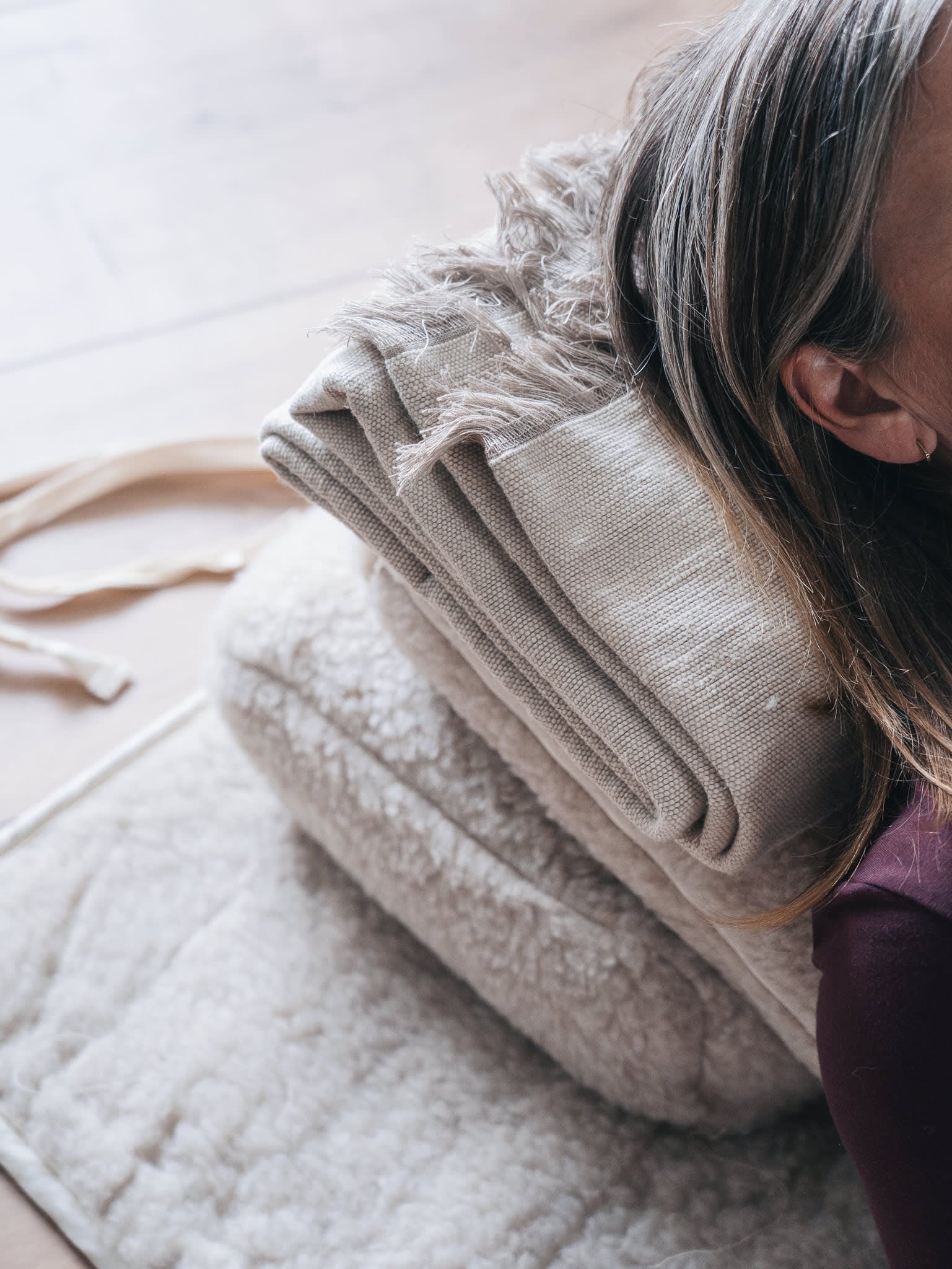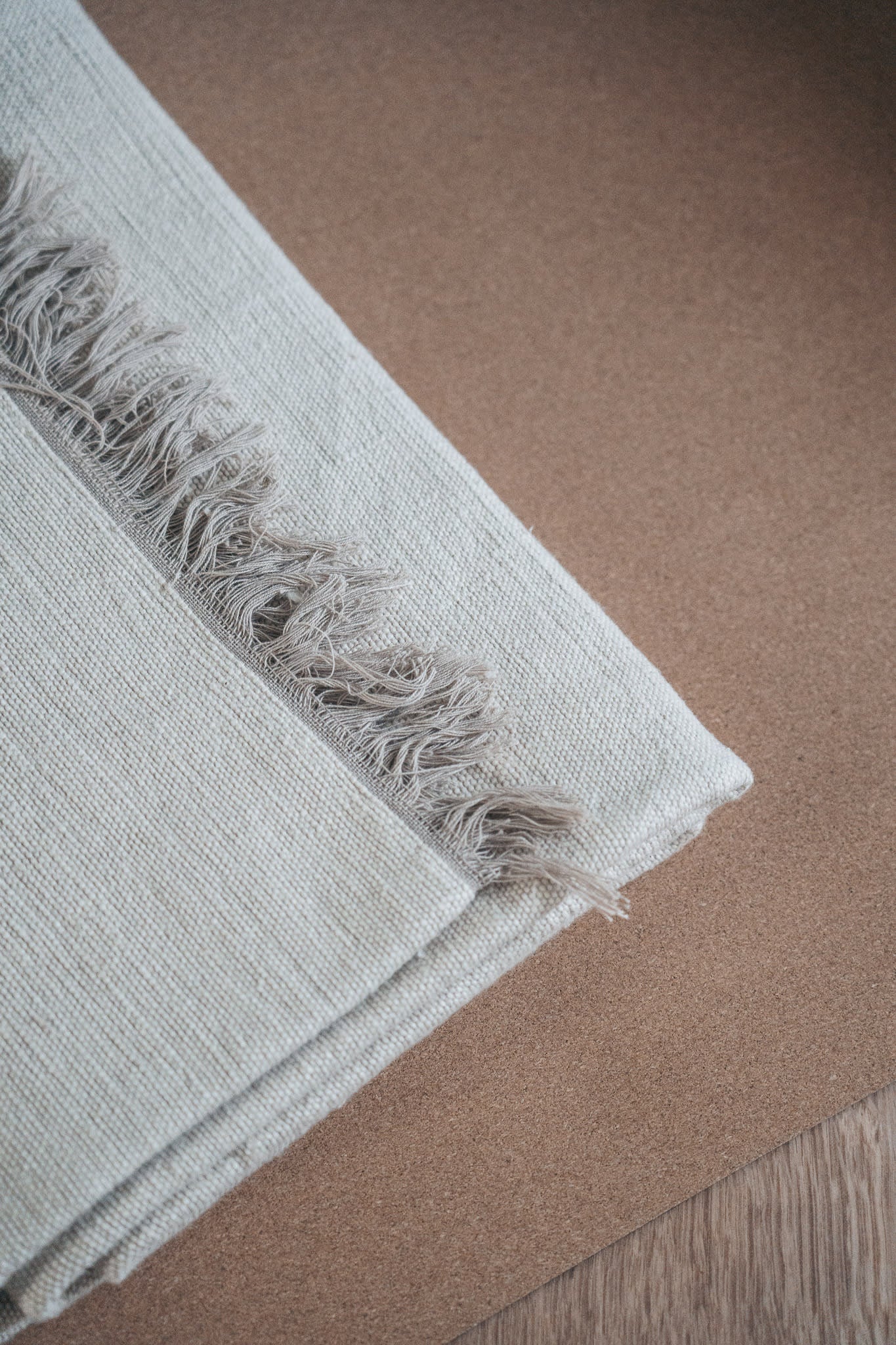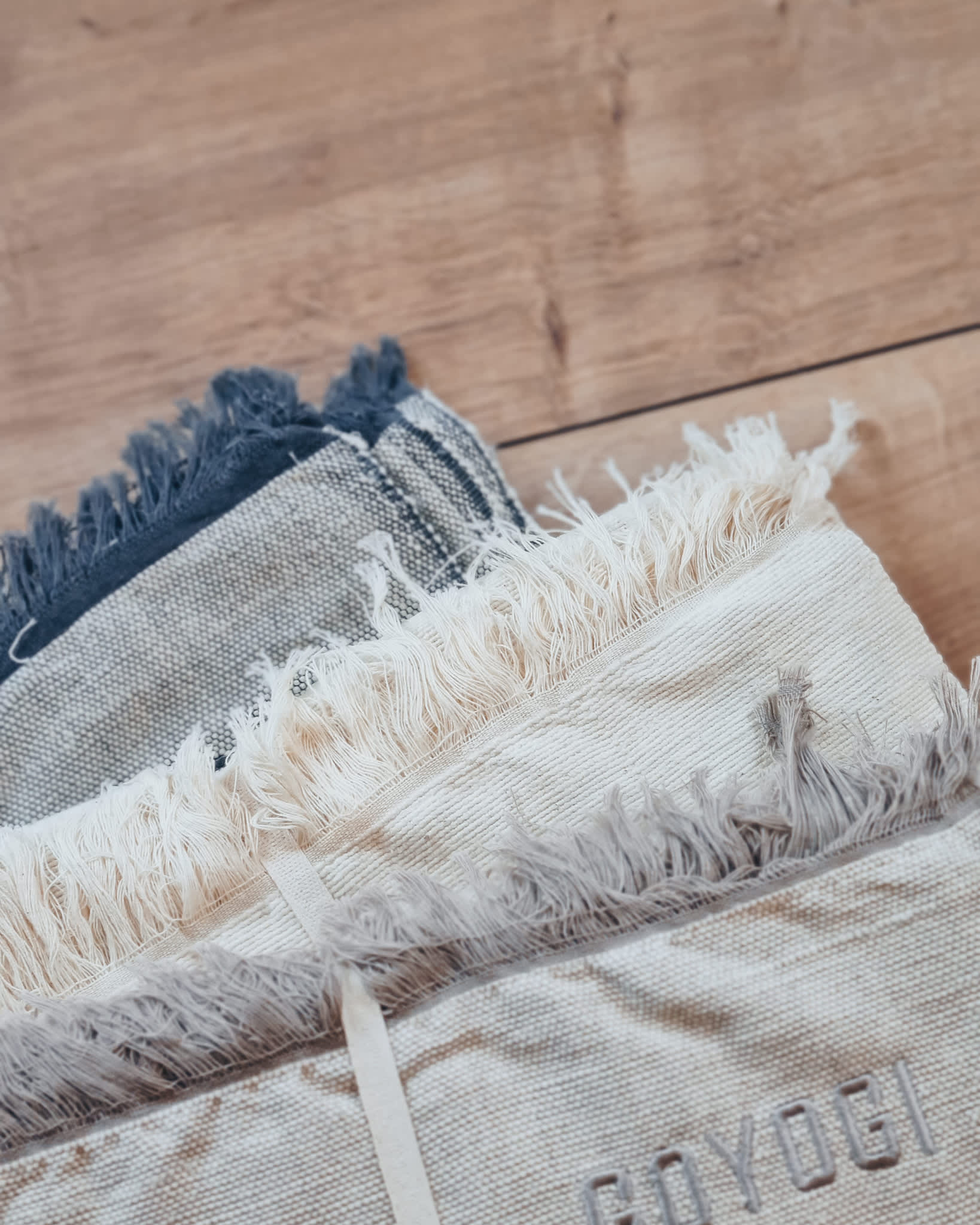 Denna vackra bomullsmatta är idealisk att ha över dig under yogans avslutande avspänning eller runt om dig under sittande meditation. Den är också perfekt för mysiga stunder i ditt vardagsrum. Mattan är tung, härlig och mjuk, handvävd och mäter 150 x 200 cm, med fransar på ena långsidan.