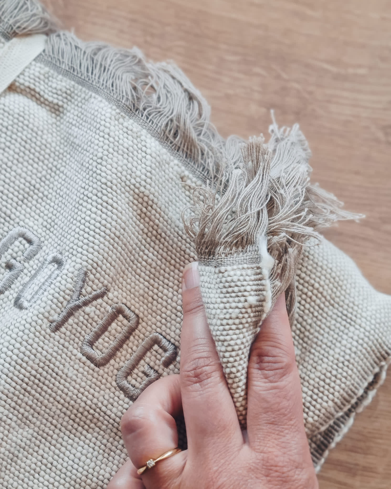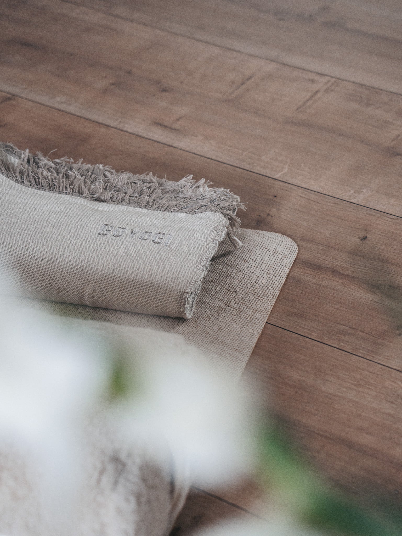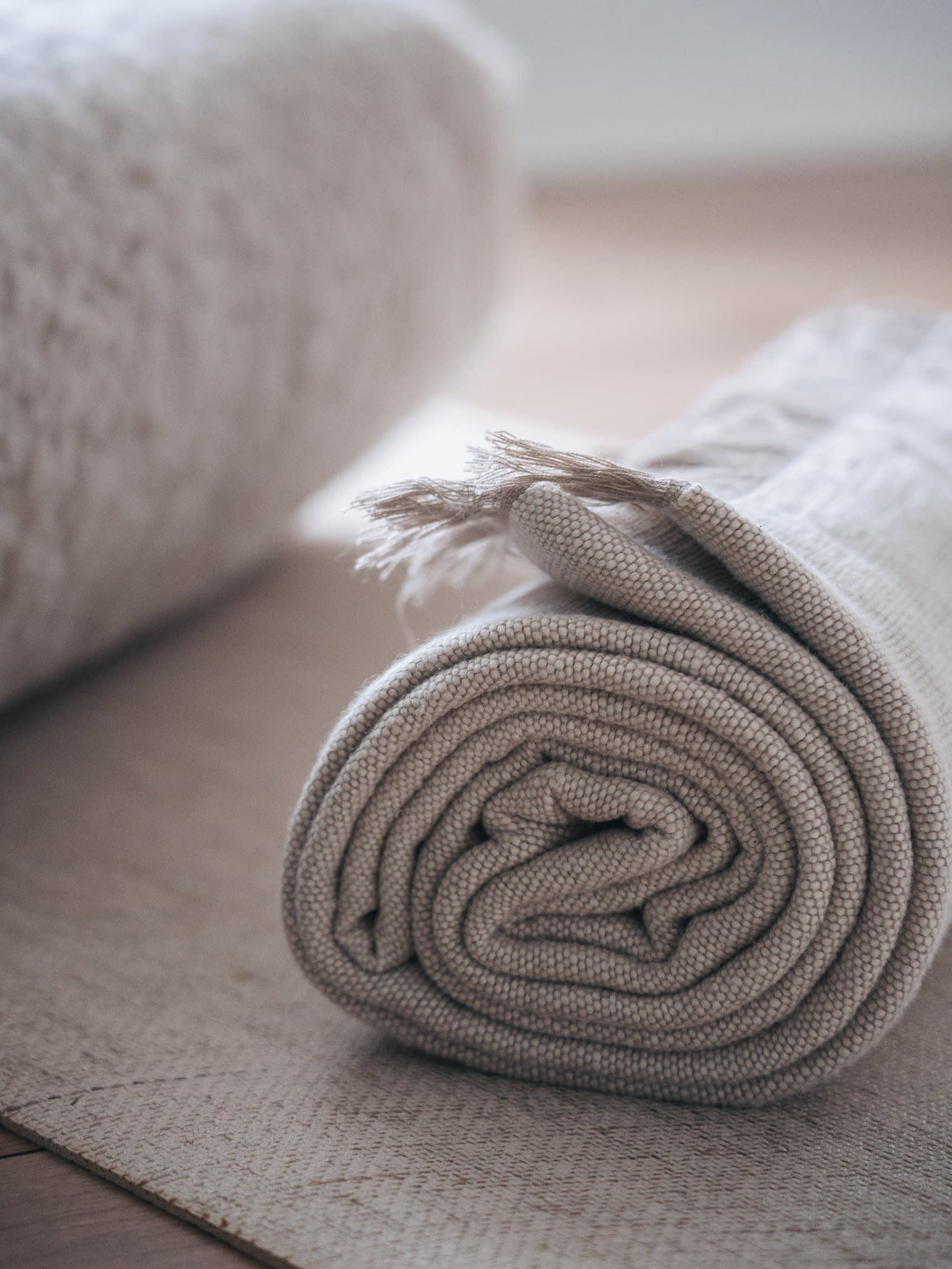 Denna vackra bomullsmatta är idealisk att ha över dig under yogans avslutande avspänning eller runt om dig under sittande meditation. Den är också perfekt för mysiga stunder i ditt vardagsrum. Mattan är tung, härlig och mjuk, handvävd och mäter 150 x 200 cm, med fransar på ena långsidan.