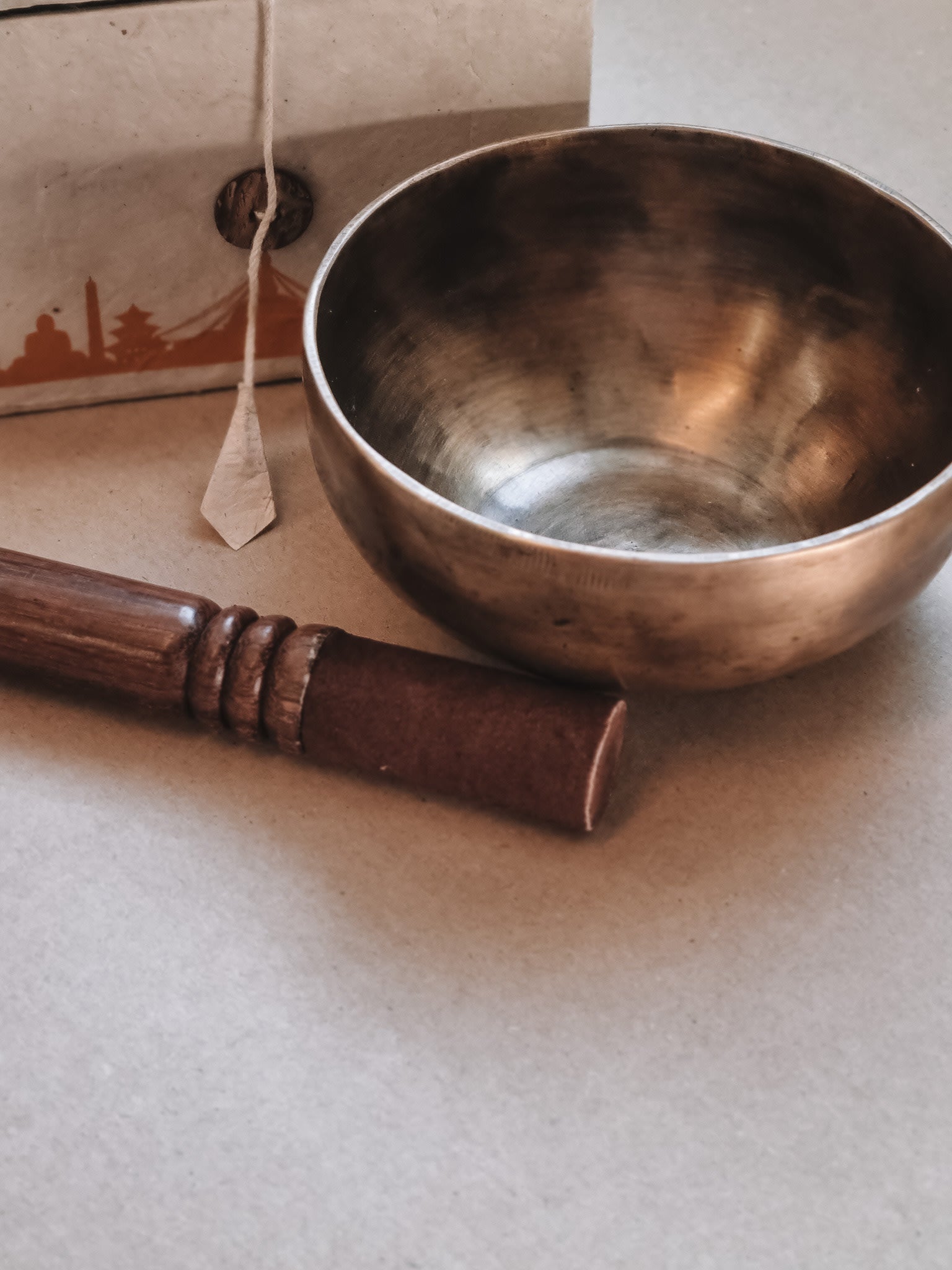 Klangskål i Mässing med Träklubba – från Kala Nepal