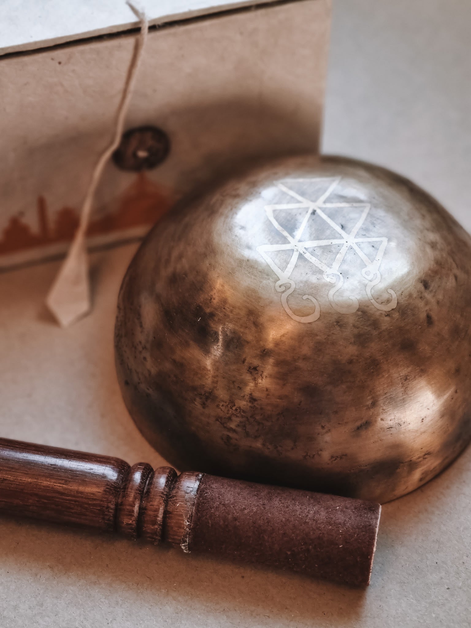 Denna handgjorda klangskål är ett vackert redskap för meditation, avslappning och energirening. Den lugnande och djupa tonen hjälper till att nollställa sinnet och skapa ro – perfekt för att öppna och avsluta din yoga- eller meditationspraktik.